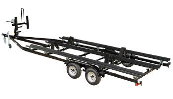 The drive on tube frame Wide Body design of these models yields a very stable road worthy trailer for bulky pontoon boats. A heavy duty ladder bow mount is incorporated into the design for safe and easy access. The heavy duty bunk support system insures full support for the pontoon tubes. All components are of the same rugged construction found on all custom Trailmaster’s.