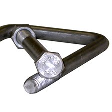 Adjustable, galvanized steel, Independent Bow Stop Assembly.  Telescopic post, 2×6″ wooden carpeted wedge pivots to adapt to bow angle.  Mounts to the tongue.  Useful as a forward stop for boats with a high bow, bow pulpit or windlass that could interfere with normal winchstand operation.